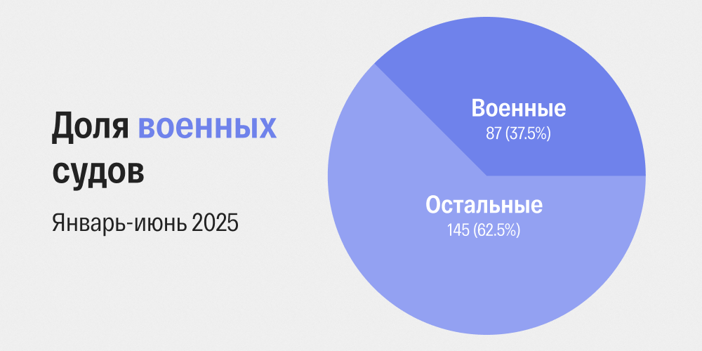 В первом полугодии 2025 года военные суды провозгласили приговоры 87 фигурантам уголовных дел (37,5% от общего числа осужденных).